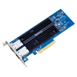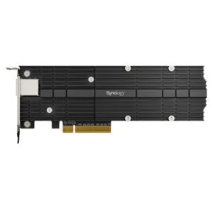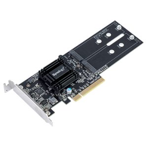Synology Desktop Series NAS Solutions (Single Bay) M2D18 Dual M.2 SSD adapter card for extraordinary cache performance View Details M2D20 Dual-slot M.2 SSD adapter card for cache acceleration View Details E10G21-F2 Dual-port 10GbE SFP+ add-in card for Synology servers View Details E25G21-F2 Dual-Port 25GbE Adapter for Synology View Details E10M20-T1 M.2 SSD & 10GbE combo adapter card for performance acceleration View Details E10G18-T1 Single-port, high-speed 10GBASE-T/NBASE-T add-in card for Synology View Details E10G18-T2 Dual-port, high-speed 10GBASE-T add-in card for Synology Servers View Details